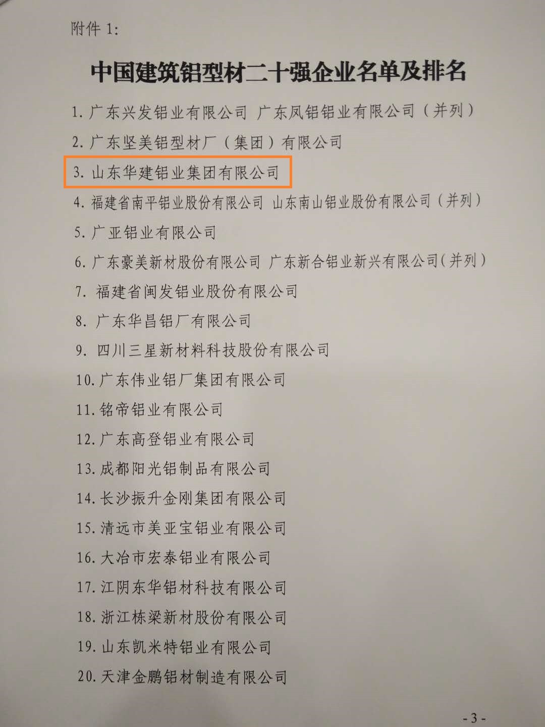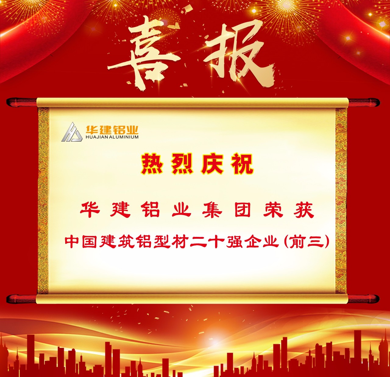 【喜報】熱烈慶祝華建鋁業集團榮獲中國建筑鋁型材二十強企業(前三)