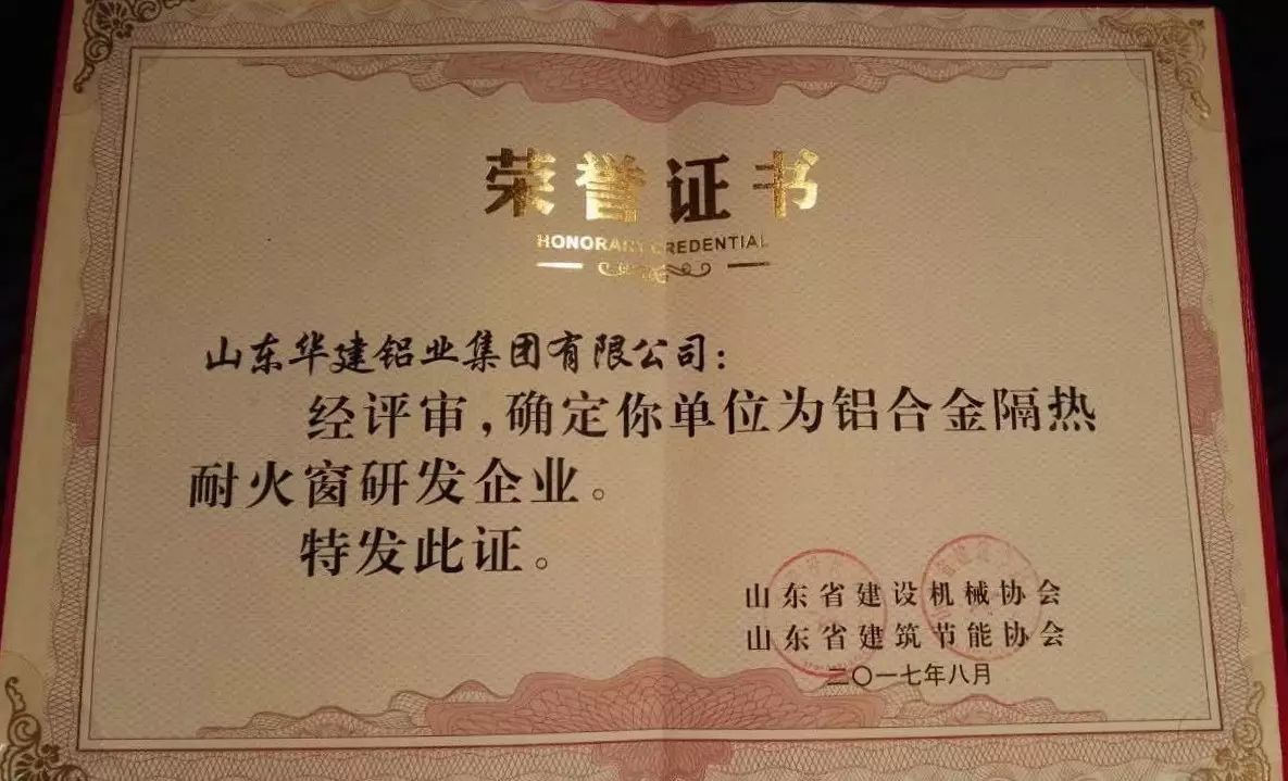 會議期間,華建鋁業集團被山東省建設機械協會和山東省建筑節能協會聯合確定為山東省第一批“鋁合金隔熱耐火窗研發企業”,同時被評為“2017年度山東省建設機械行業骨干企業”。成員企業山東華達門窗有限公司被確定為山東省第一批“被動窗研發企業”,山東飛度膠業科技有限公司被評為“2017年度山東省建設機械行業骨干企業”。