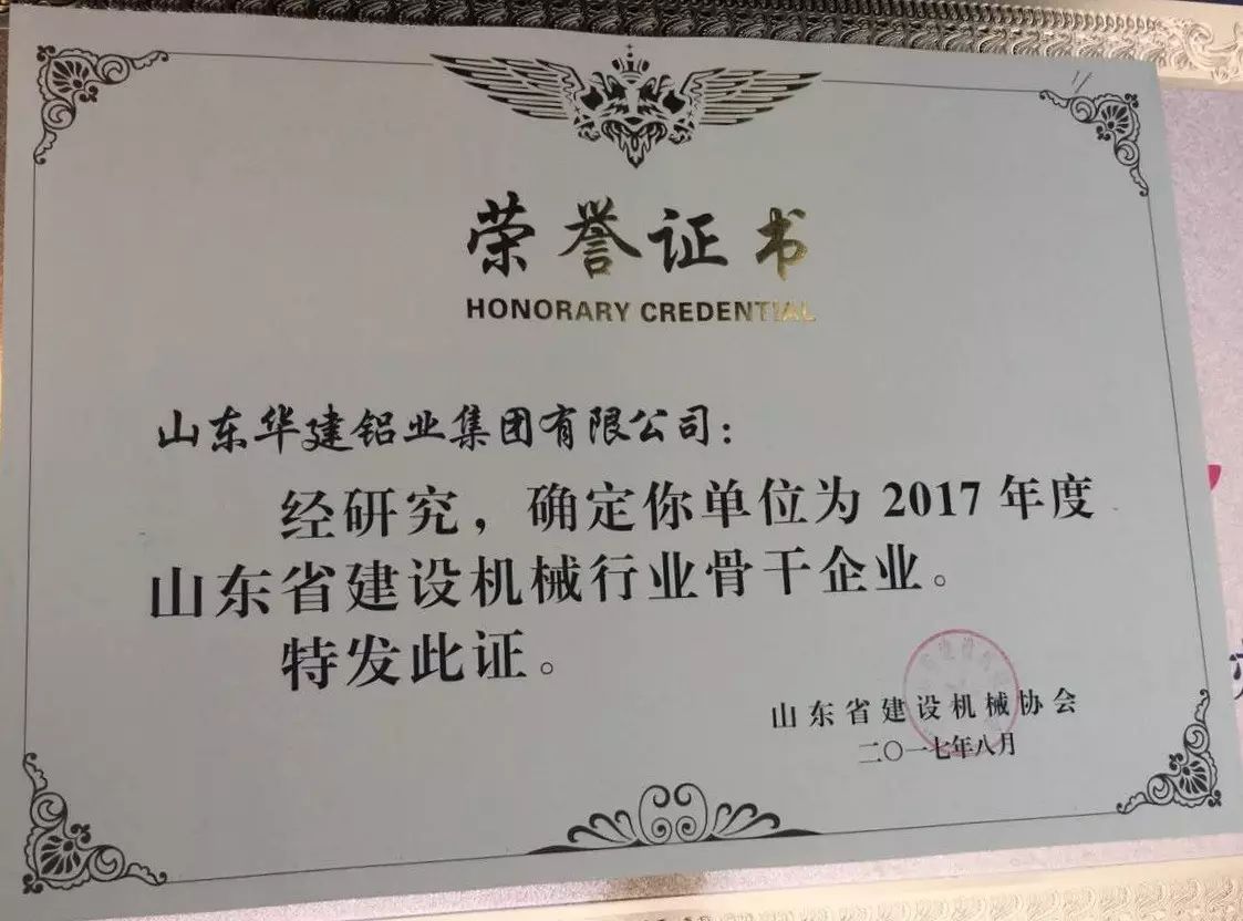 2017年9月10日,山東省建機行業骨干企業現場觀摩會暨山東省建機協會六屆二次理事會在濱州隆重召開。山東省建設機械協會副會長、華建鋁業集團董事長吳維光與省建機協會相關領導一同在主席臺就坐,并為獲獎單位頒獎。